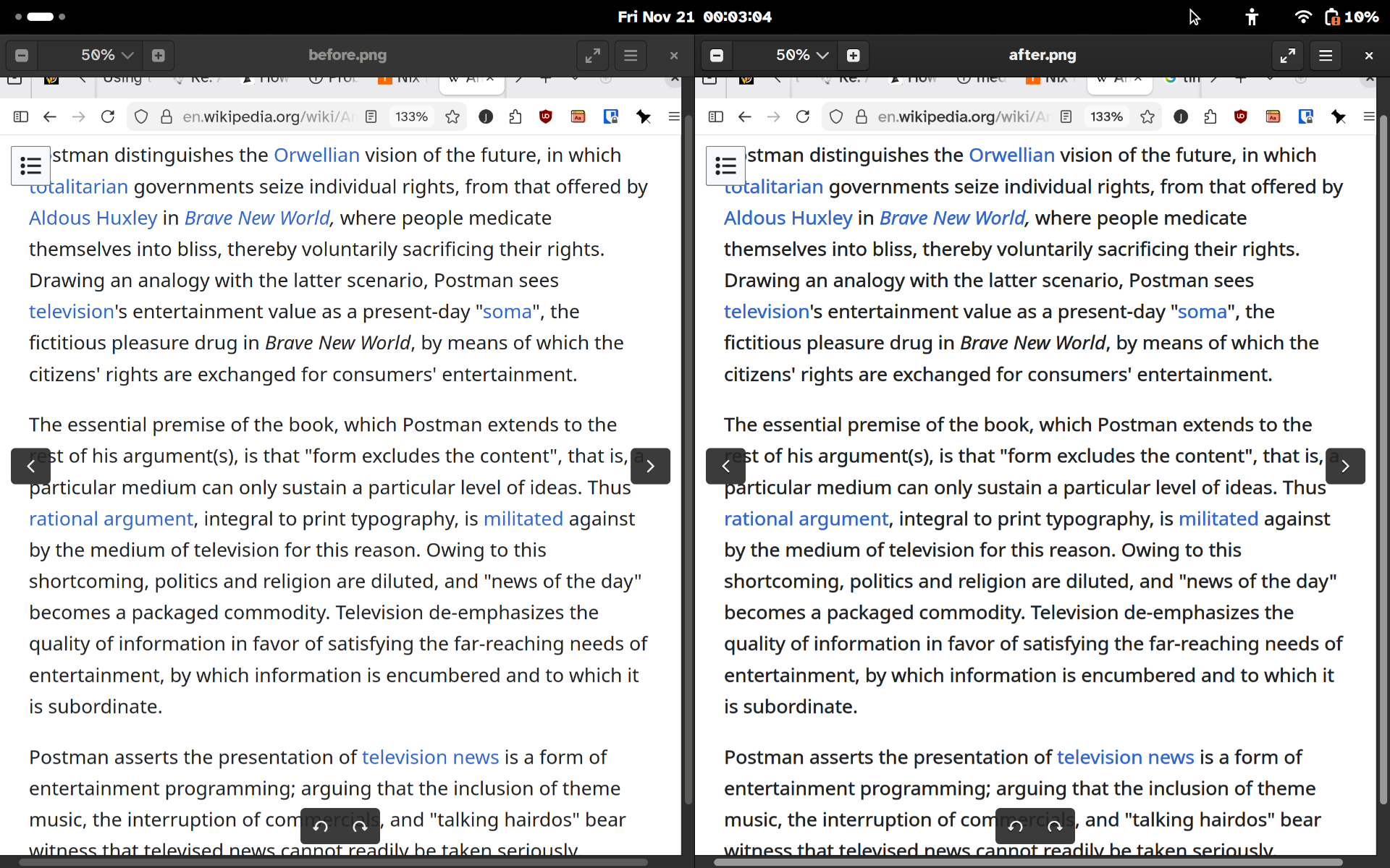 FREETYPE_PROPERTIES is set in /etc/environment so that it sticks as a global configuration. You can see the effect in the following screenshots stitched together from before and after applying the configuration: